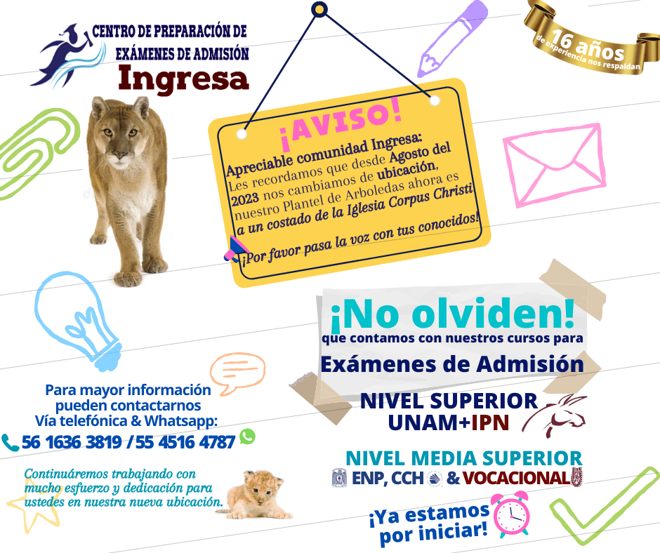 Somos una institución con más de 16 años de experiencia en preparar alumnos de manera exitosa en su formación para los exámenes de admisión a Nivel Medio Superior y Superior (UNAM-IPN).